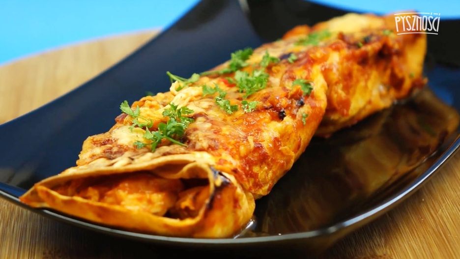 Pyszna tortilla zapiekana w sosie enchilada