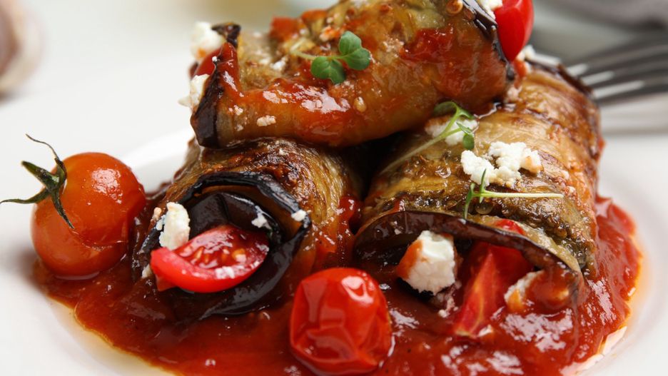 Roladki z bakłażana faszerowane mozzarellą w sosie pomidorowym
