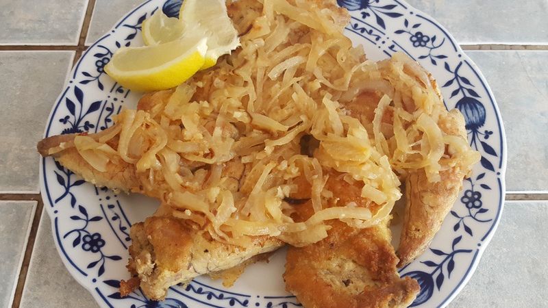 - W czasie duszenia cebuli ikrę namocz w mleku, oprósz solą i pieprzem, a następnie obtocz w mące.