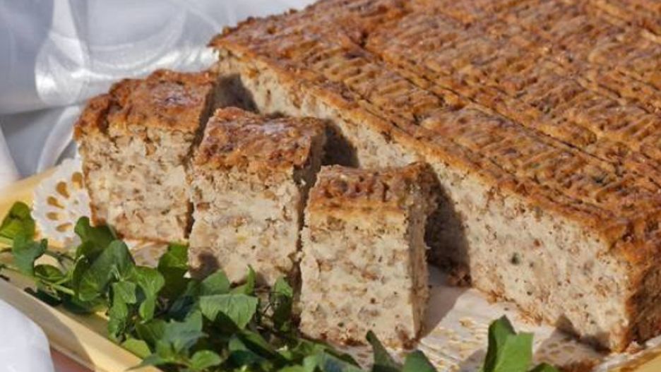 - Kiedy masa ostygnie, dodaj pokruszony twaróg, rozkłócone jaja, dopraw pieprzem, solą i miętą. Całość zamieszaj.