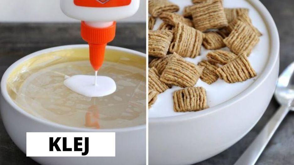 Zastanawiałeś się, jakim cudem płatki tak pięknie unoszą się na powierzchni mleka i nie toną? To sprawka kleju, który pozwala ułożyć płatki śniadaniowe idealnie do zdjęcia.