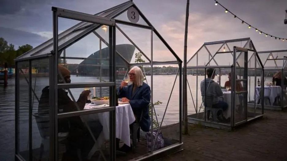 W trosce o zdrowie i dobro swoich klientów restauracja Mediamatic ETEN dba o odpowiednie odległości między stolikami w dość niekonwencjonalny sposób. Wykorzystała w tym celu... małe szklarnie!