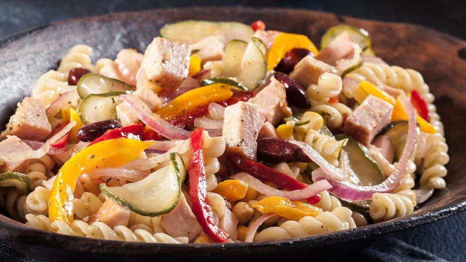 Kolorowa sałatka makaronowa zawsze jest hitem, bez względu na to, czy robisz ją na święta Bożego Narodzenia, sylwestra czy może na lunch do pracy. Wersja z dodatkiem wędzonego indyka i kolorowych warzyw jest wyjątkowo bogata, co jeszcze lepiej pasuje do nazwy sałatki.