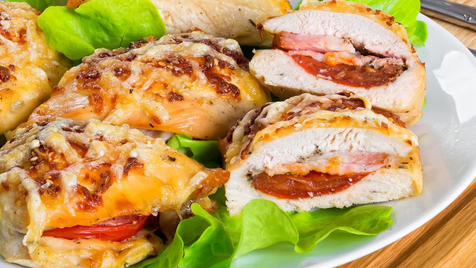 Przepis na pierś z kurczaka faszerowaną pomidorem, serem i szynką