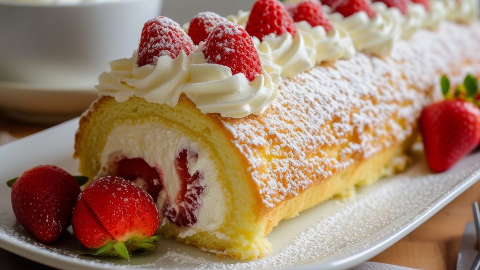 Rolada biszkoptowa z kremem i truskawkami