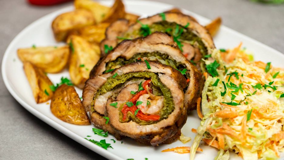 Nasza rolada z karkówki skrywa w sobie liście włoskiej kapusty i plastry czerwonej papryki. Takiej kombinacji smakowej nie jesteśmy w stanie się oprzeć. Z Tobą będzie tak samo 🥰