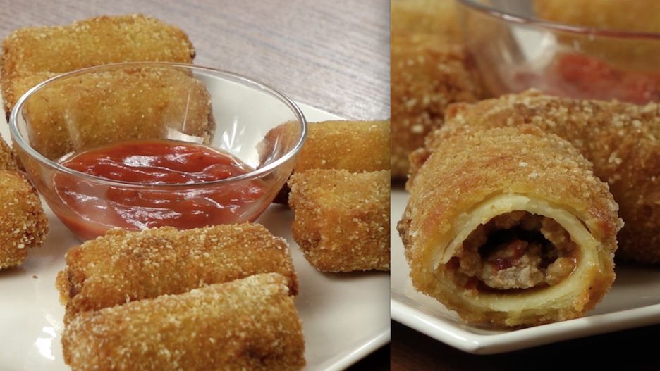 8. Gotowe roladki połóż na talerzu i pozostaw do ostygnięcia na 10 minut. Podawaj samodzielnie lub z sosem pomidorowym.