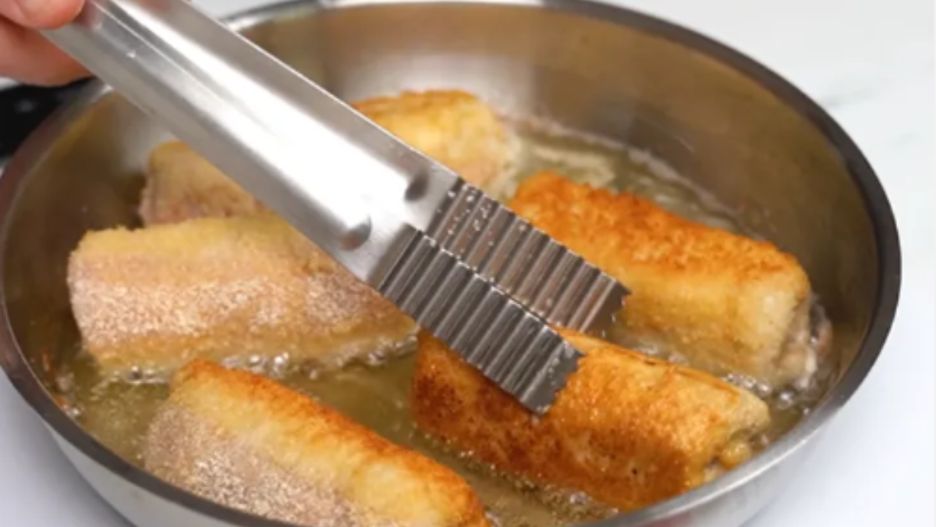 - Roladki obtaczaj w rozkłóconym jajku, a następnie bułce tartej wymieszanej z orzechami i smaż na dobrze rozgrzanym tłuszczu.