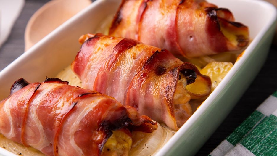 Otoczony boczkiem i serem, schab jest pieczony w rękawie do pieczenia. Dzięki temu mięso jest soczyste i delikatne, a boczek chrupiący. Ser natomiast nadaje potrawie kremowy smak i aksamitną konsystencję.