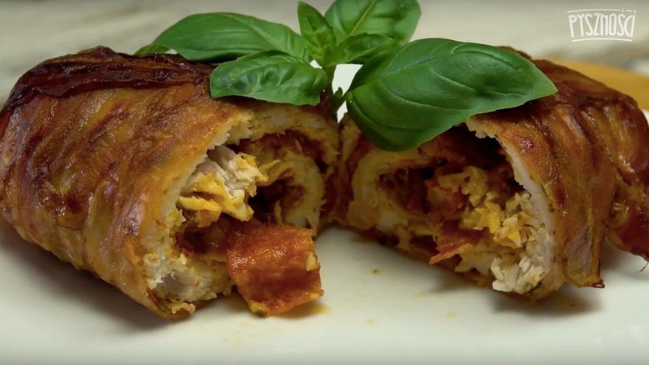 Pizzowe roladki z kurczakiem, salami i boczkiem