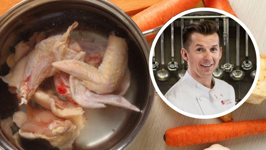Karol Okrasa nie gotuje rosołu na całym kurczaku. Jedną część odcina i nigdy nie dodaje do garnka
