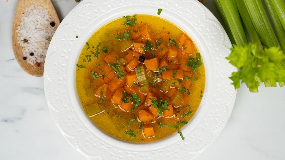 Po tym czasie nasz kolagenowy bulion jest już gotowy. Możesz serwować go samodzielnie, z pokrojonymi warzywami i natką pietruszki lub z ulubionym makaronem. Taka zupa to witaminowa bomba, która pomoże zadbać Ci o odporność w czasie jesiennej zmiany pogody. Przyjemnie rozgrzeje od środka i poprawi nawet najsłabszy humor.