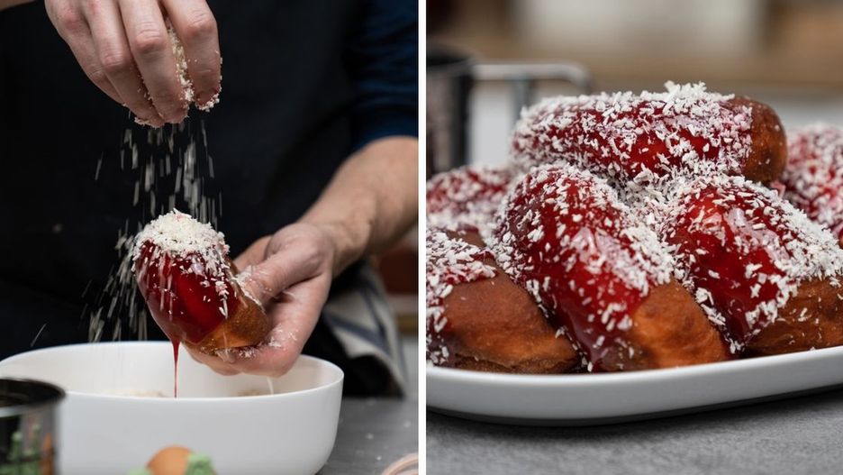 Różowe pączki z kokosowym nadzieniem i malinową polewą. Przepis na pyszny deser