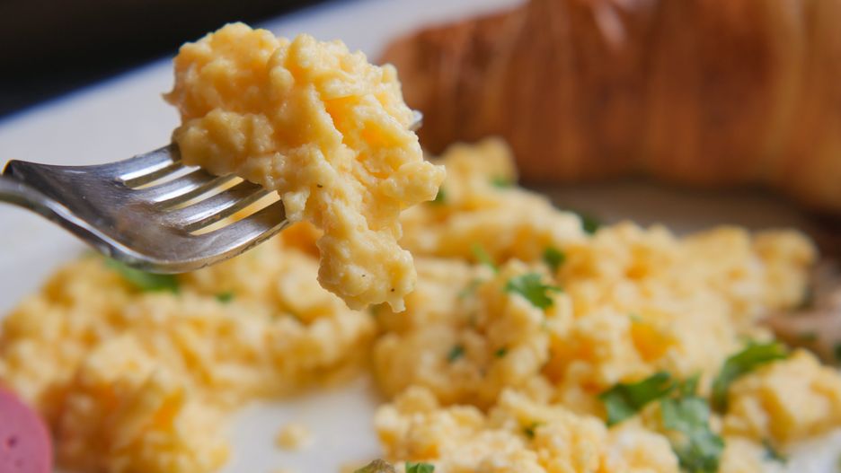 Gdy płynna warstwa jest prawie ścięta, ale wciąż lekko płynna, przekładamy jajecznicę na talerz. Ciepło dokończy proces gotowania. Severoon wyjaśnia, że metoda ta polega na wykorzystaniu pary wodnej, która powstaje w jajkach pod wpływem wysokiej temperatury. Para ta unosi jajka, co sprawia, że ich objętość może się podwoić lub potroić.