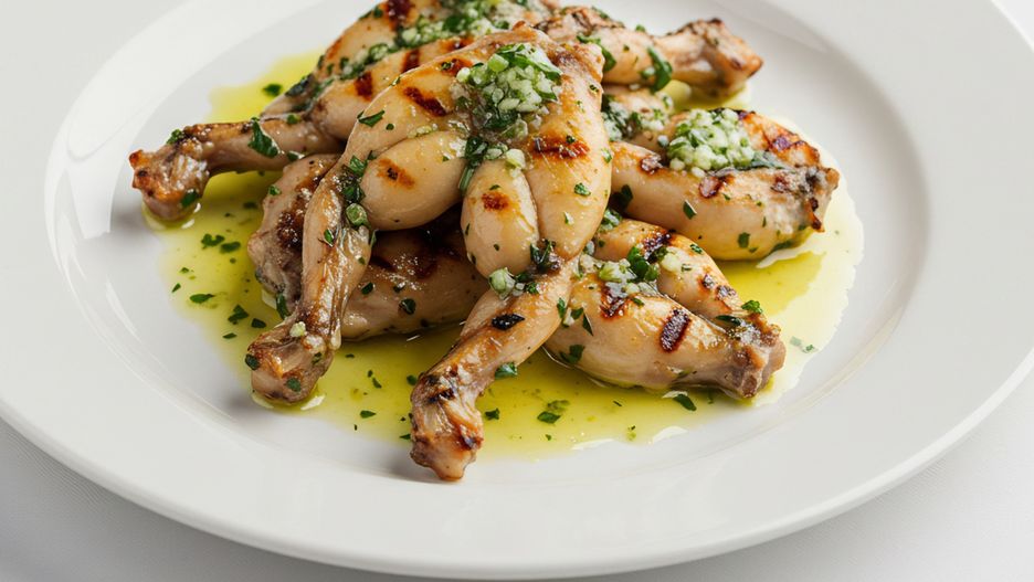 O ile ślimaki zazwyczaj kupimy już gotowe do obróbki cieplnej, o tyle nad przygotowaniem żabich udek musimy trochę popracować. Najprościej je usmażyć z czosnkiem. Ale wcześniej warto je zamarynować. Oto przepis: