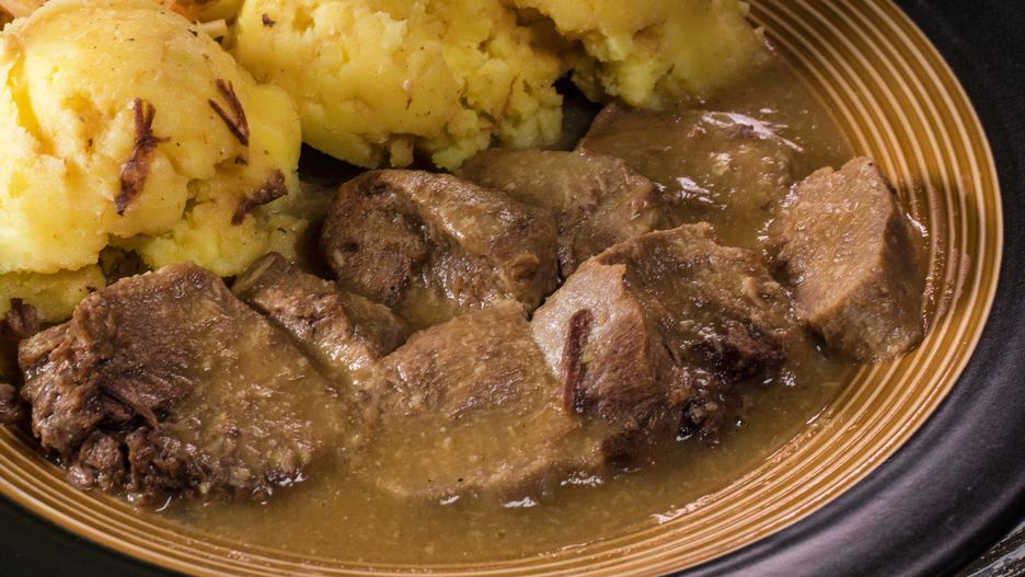 Gulasz z żołądków z buraczkami i ziemniakami. Smakuje jak u babci