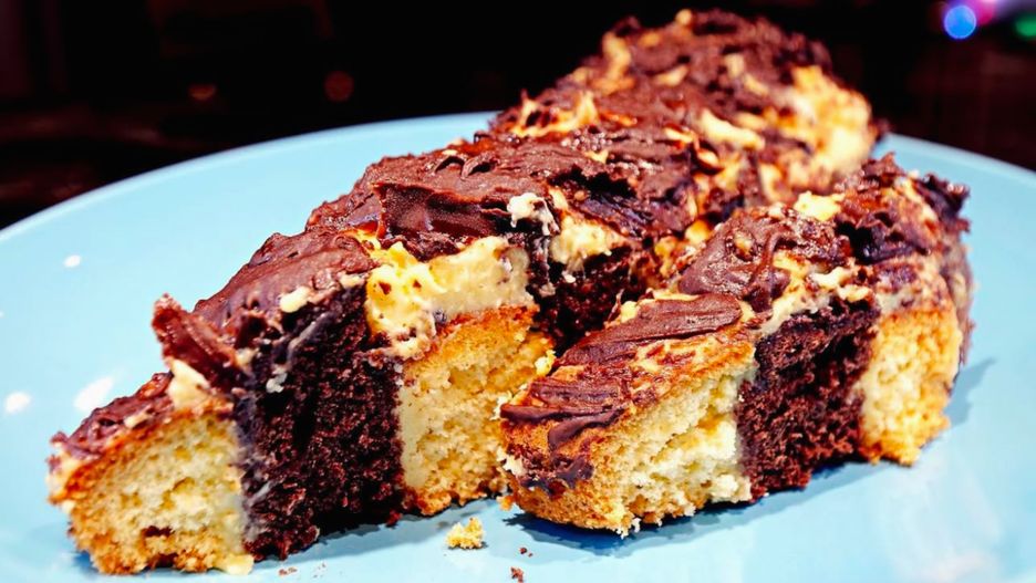 - Wylej jasną i ciemną masę do dwóch podłużnych keksówek wyłożonych papierem do pieczenia. Piecz w piekarniku nagrzanym do 180°C przez około 40 minut. Po upieczeniu ostudź.