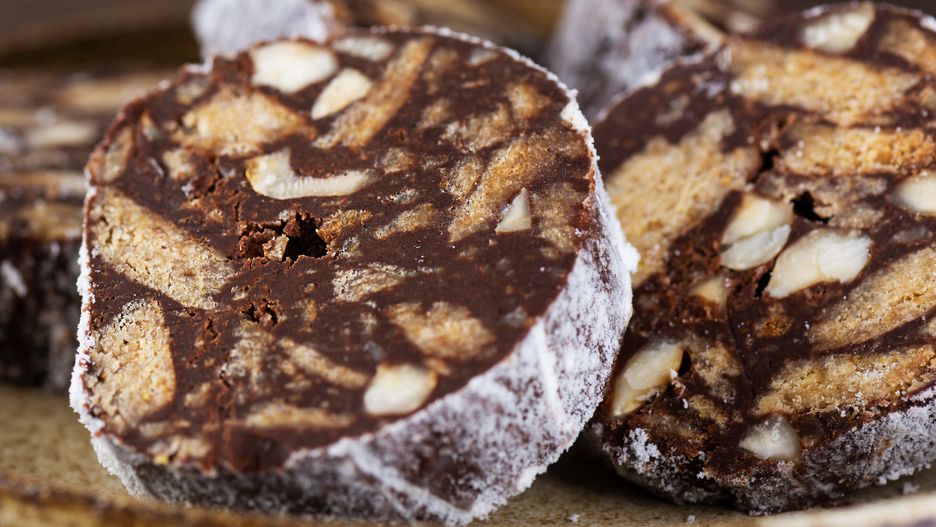 - Herbatniki i orzechy włoskie drobno pokrój, a następnie dodaj do masy. Po wymieszaniu przełóż do małej nieprzywierającej foremki (około 3 cm x 10 cm).