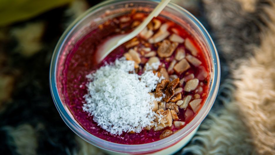 Owsianka kokosowa to wyjątkowe połączenie rozgrzewającej delikatności z egzotyczną nutą. Dzięki dodatkowi mleka kokosowego posiada subtelny, aksamitny smak, który naturalnie komponuje się z owocami. Na wierzchu ląduje mus z truskawek, lekko kwaskowaty, orzeźwiający i pełen aromatu. Ten owocowy akcent nie tylko nadaje owsiance kolor i świeżość, ale też dostarcza całkiem sporą dawkę witamin i antyoksydantów.