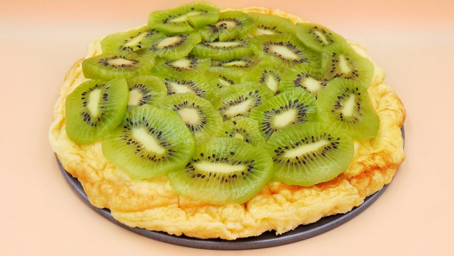 - Gotowego omleta przełóż na talerz. Na górze rozłóż kiwi. Zjedz od razu po przygotowaniu.