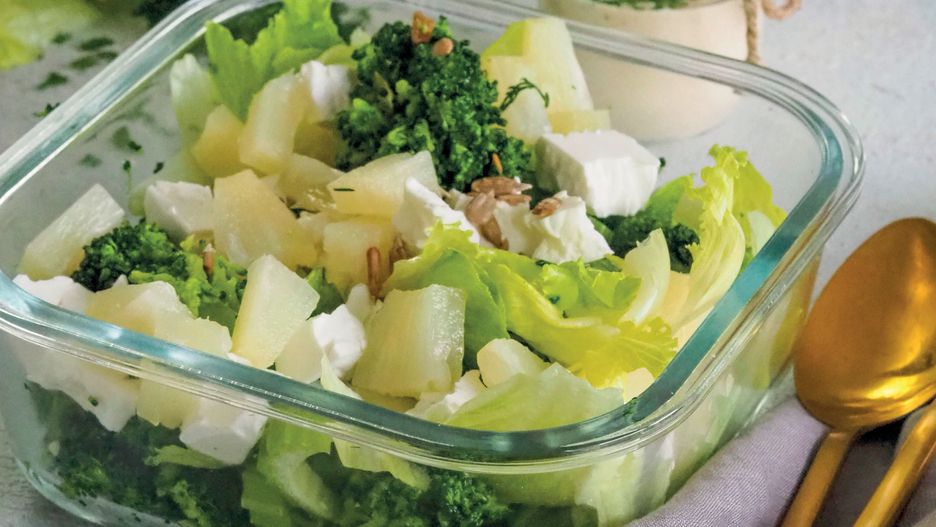 Zielona sałatka z ananasem i sosem curry