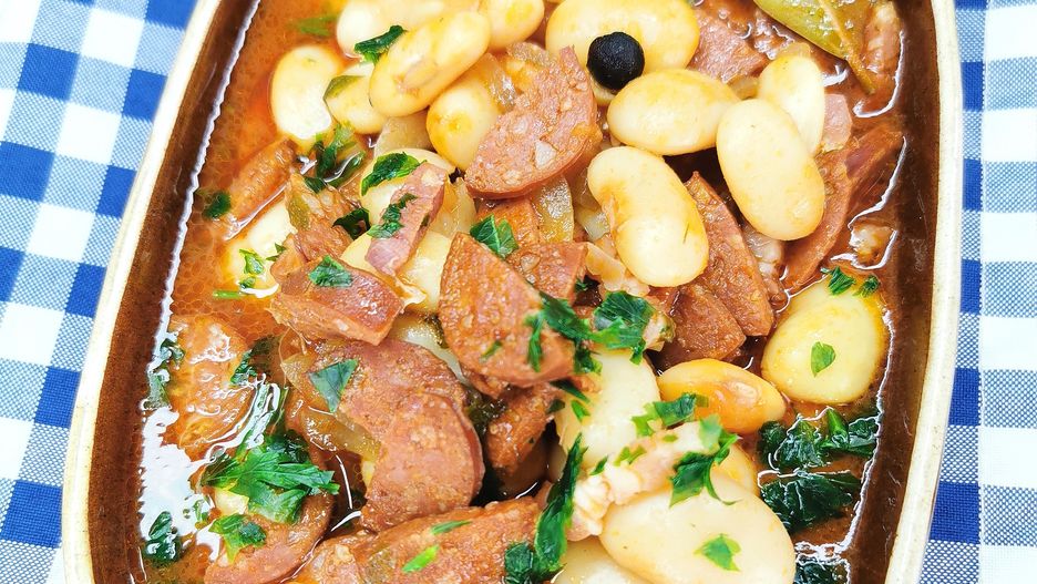 To smaczna i sycąca wersja tak u nas popularnej fasolki po bretońsku. Do tej potrawy dodałam kiełbasę chorizo (hiszpańską kiełbasę wieprzową), dzięki której uzyskałam wyjątkowy wyrazisty smak oraz piękny czerwony kolor. Dzięki różnym dodatkom danie jest pyszne! Fasolka z chorizo jest najlepsza po kilku godzinach od przygotowania.