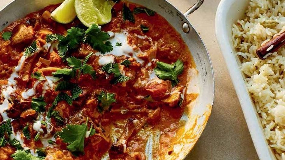 Nie zamierzam twierdzić, że to danie powstało wyłącznie z powodu chęci wykorzystania tak dźwięcznej nazwy – ale nazwa mogła tu odegrać pewną rolę! Mięsiste grzyby i soczyste pomidory spowija znajomy aromat pożywnego sosu masala. Potrawa podawana z zapiekanym ryżem kokosowym, naszpikowanym goździkami, kardamonem i cynamonem, szybko staje się tym, po co sięgasz w pierwszej kolejności w powszednie dni.