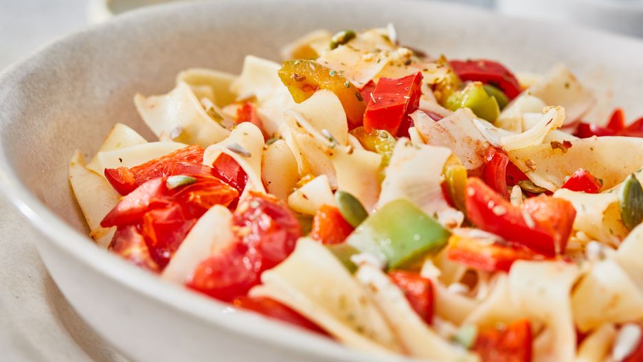 Jeśli szukasz inspiracji na andrzejkową szybką sałatkę, koniecznie zerknij na przepis poniżej. Znajdziesz tam bardzo prostą kompozycję składającą się z makaronu, papryki, pomidora i ogórka. Warto też postawić na mocny akcent w postaci ulubionego sera oraz wędliny. Całość spaja wyśmienity czosnkowo-bazyliowy sos z pomidorową nutą.
