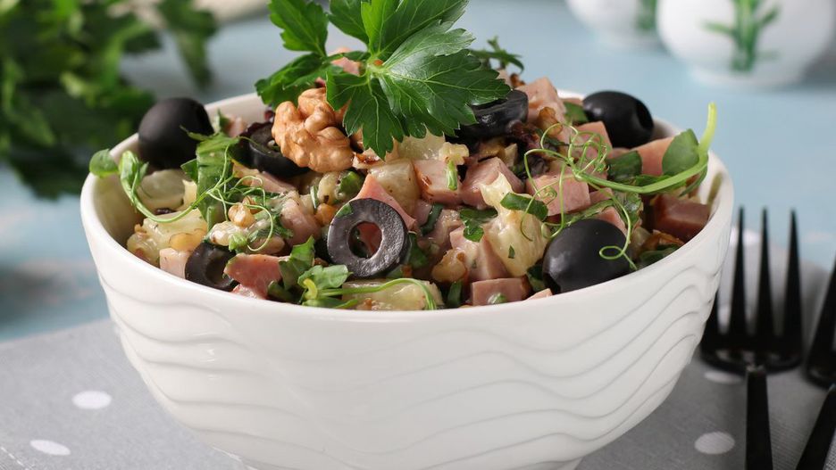 Myśląc o przekąskach na domówkę, warto rozważyć coś sycącego, ale podanego w takiej formie, aby nikt nie czuł się zobowiązany do skonsumowania obiadowej porcji. Sałatka berlińska doskonale sprawdza się w takiej roli. Dzięki mięsnej wkładce jest konkretna, a pozostałe składniki dodają jej kolorów i lekkości. Zamiast szynki możesz sięgnąć po pieczoną pierś z kurczaka. W wersji wegetariańskiej zastąp mięso żółtym serem pokrojonym w kostkę.