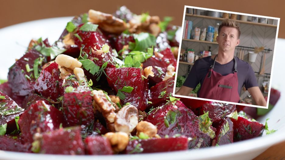Orzeźwiająca sałatka z buraków od Karola Okrasy. Szef kuchni podbija jej smak ulubionym ziołem Polaków