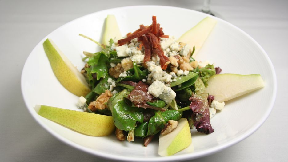 - Dodaj gruszki: Pokrój gruszki na cienkie plasterki. Jeśli wolisz, możesz je obrać, ale skórka doda dodatkowej tekstury. Dodaj do sałat.