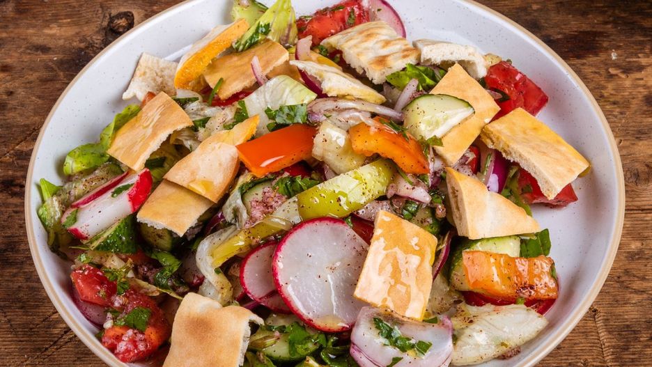 Kiedy w arabskim domu gospodyni znajduje czerstwe pieczywo to znak, że czas przygotować sałatkę. Fettusz (fattusz, fattush) jest jedną z najpopularniejszych sałatek w kuchni Bliskiego Wschodu. Poza chrupiącym, podpieczonym chlebem znajdziesz w niej liście baklo, czyli portulaki pospolitej. Są mięsiste, orzeźwiające i delikatnie kwaśne. Znalezienie ich w polskim sklepie jest praktycznie niemożliwe, więc w moim przepisie pomijam ich dodatek.