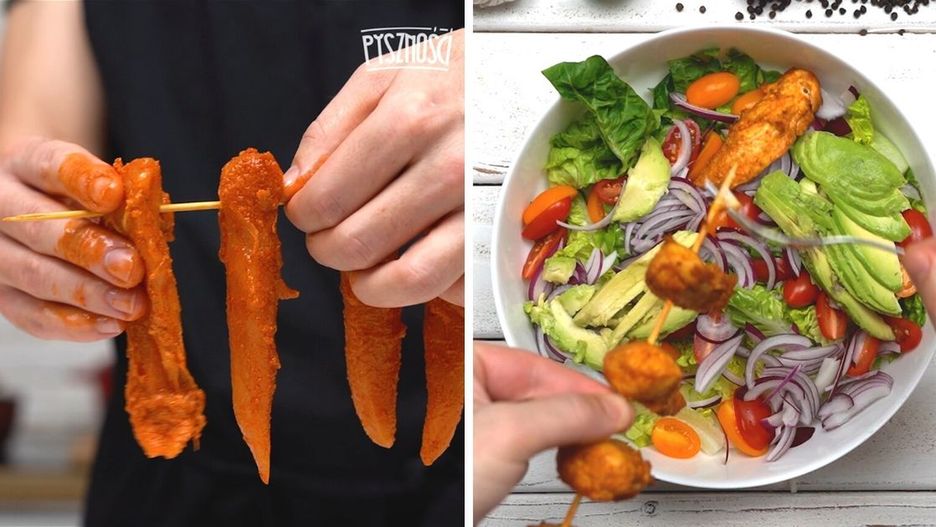 Sałatka z polędwiczkami z kurczaka. Jak zrobić marynatę?