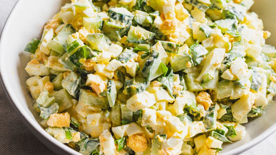 - Wlej sos do sałatki i delikatnie wymieszaj, tak aby każdy kawałek warzywa i jajka był nim otoczony.