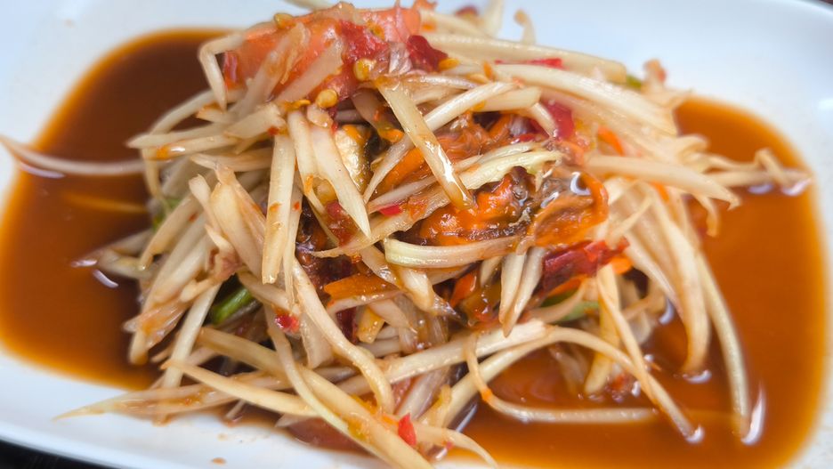 Do tego w sałatce pojawia się również limonka, czosnek, sos rybny, chili, pomidorki oraz podprażone orzeszki ziemne. Całość jest doprawiona cukrem palmowym i sosem rybnym. To przyjemne połączenie chrupkości i świeżości. Sałatkę Som Tam podawać można jako samodzielną przekąskę lub jako dodatek do dań mięsnych i rybnych.
