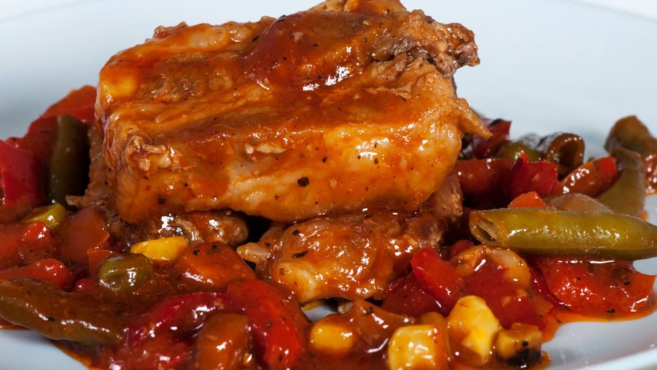 W tym daniu schab podajesz w plastrach, lekko rozbitych tłuczkiem, jak na kotlety, ale nie panierujesz go, a zamiast tego obtaczasz w pełnym warzyw sosie. Warto dodać do niego ananas, który może na pierwszy rzut oka wydawać się kontrowersyjny, ale po spróbowaniu zrozumiesz, że ta słodka nuta idealnie dopełnia się z reszta dania.