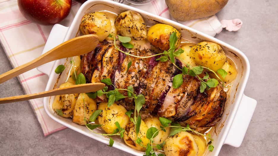 Schab z jabłkami i ziemniakami to gotowa receptura na pyszny obiad dla Twojej rodziny. Całe danie przygotujesz w jednym naczyniu. Co więcej, proces przygotowania jest bajecznie prosty!