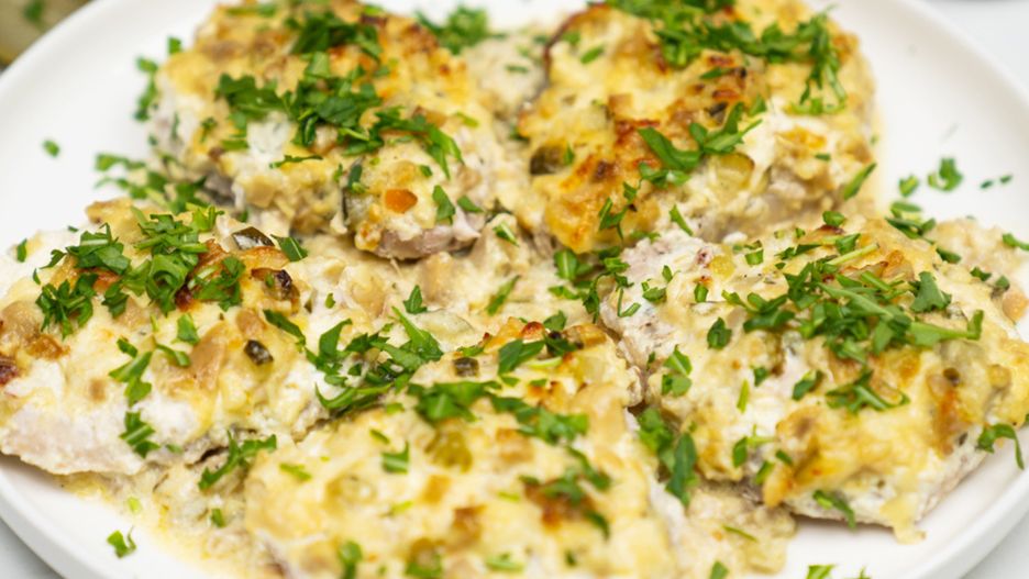 Schab z piekarnika pod serowo-warzywną pierzynką. Idealny na rodzinny obiad