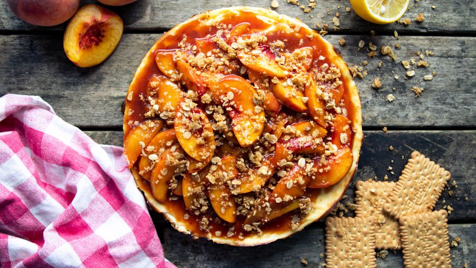 Sernik brzoskwiniowy na spodzie z płatków owsianych