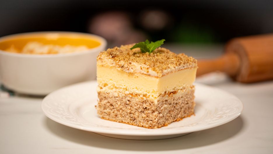 Orzechowe ciasto, kremowa masa budyniowa oraz serowa i jeszcze więcej orzechów - tylko tyle potrzeba do szczęścia. Biszkopt z orzechami włoskimi świetnie sprawdza się w roli spodu, chociaż tak naprawdę gra on tutaj główną rolę, wyróżniając ten przepis spośród innych.