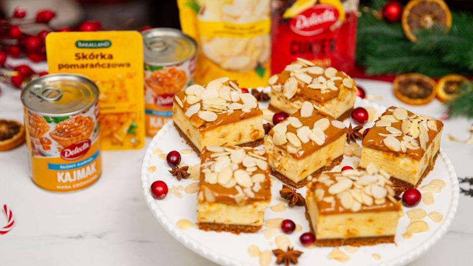 I właśnie na takie efekty można liczyć, wykorzystując składniki najwyższej jakości od polskiej marki Delecta oraz poniższy przepis na genialny sernik w świątecznym wydaniu. Ufając sprawdzonym produktom marki, możesz mieć pewność, że wszystko się uda. Idealnym uzupełnieniem kremowej masy serowej i delikatnego spodu z herbatników będzie masa kajmakowa z migdałami w płatkach. Nie dość, że taki duet doda domowemu wypiekowi dodatkowych walorów smakowych, to jeszcze genialnie się prezentuje. Od samego patrzenia można natychmiast zgłodnieć! Podaruj bliskim to, co najlepsze w święta.