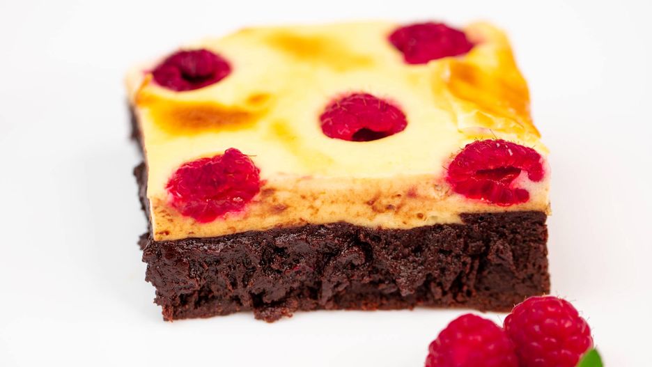 Sernikowe brownie z malinami