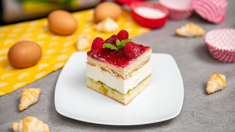 Lekkości dodaje warstwa dżemu, która dodatkowo nasącza biszkopt. Ja wybrałam ten o smaku kiwi oraz malin, ze względu na kwaśny i orzeźwiający smak. Możesz jednak sięgnąć po inny smak.
