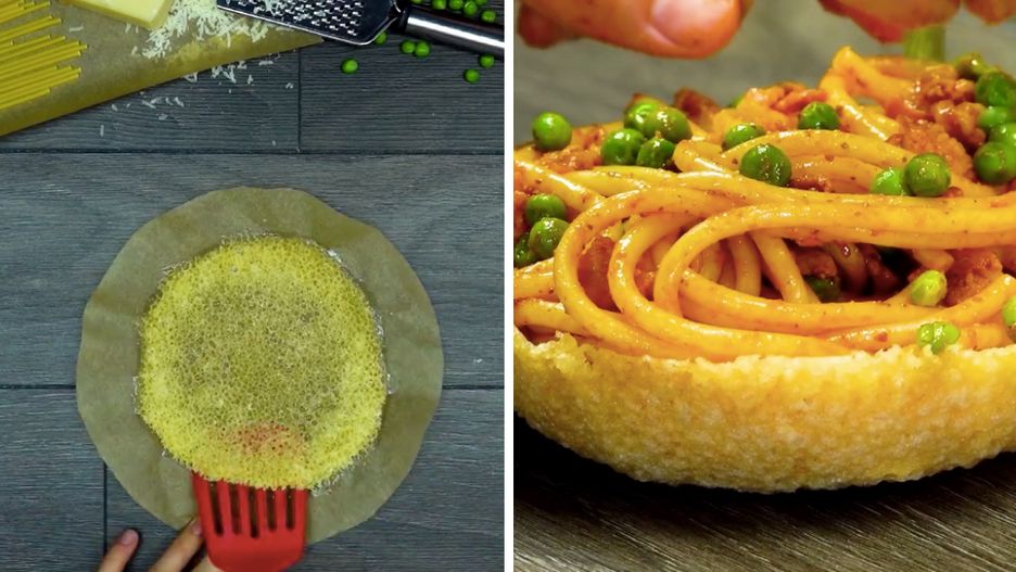 Tym razem postanowiliśmy sami wyprodukować naczynie, w którym podaliśmy makaron z groszkiem i boczkiem. Serowe miseczki to po prostu będzie hit ?❤️