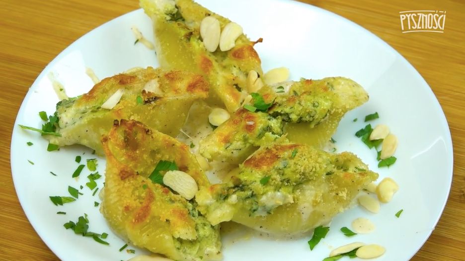 Serowe muszle ze szpinakiem