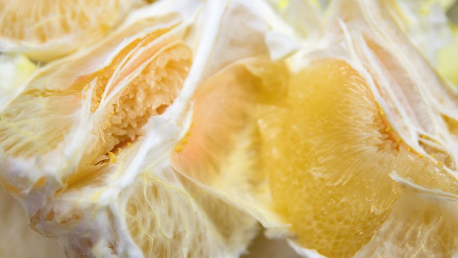 Pomelo nazywane jest również pomarańczą olbrzymią, chociaż przypomina bardziej grejpfruta. To największy cytrus na świecie - może osiągnąć nawet 25 cm średnicy i ważyć 2 kilogramy. Jego gruba, gąbczasta skórka ma zazwyczaj żółtawy lub różowy kolor. Pod nią kryje się soczysty, podzielony na części miąższ, który łączy w sobie słodki smak pomarańczy z delikatną goryczką grejpfruta.