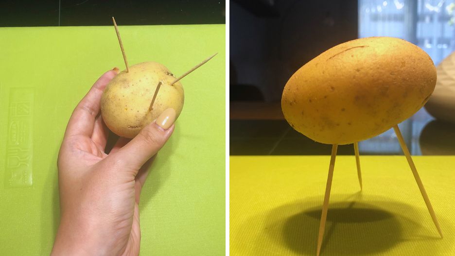 W ubiegły weekend odwiedziłam moją siostrę, która była właśnie w trakcie przygotowywania obiadu. W pewnym momencie wzięła do ręki ziemniaki i zaczęła wbijać w nie wykałaczki. W pierwszej chwili zaniemówiłam z wrażenia i próbowałam sama znaleźć logiczne rozwiązanie tej sytuacji. Kiedy jednak zaczęła je odwracać i ustawiać na blacie nie wytrzymałam i poprosiłam o wyjaśnienia.
