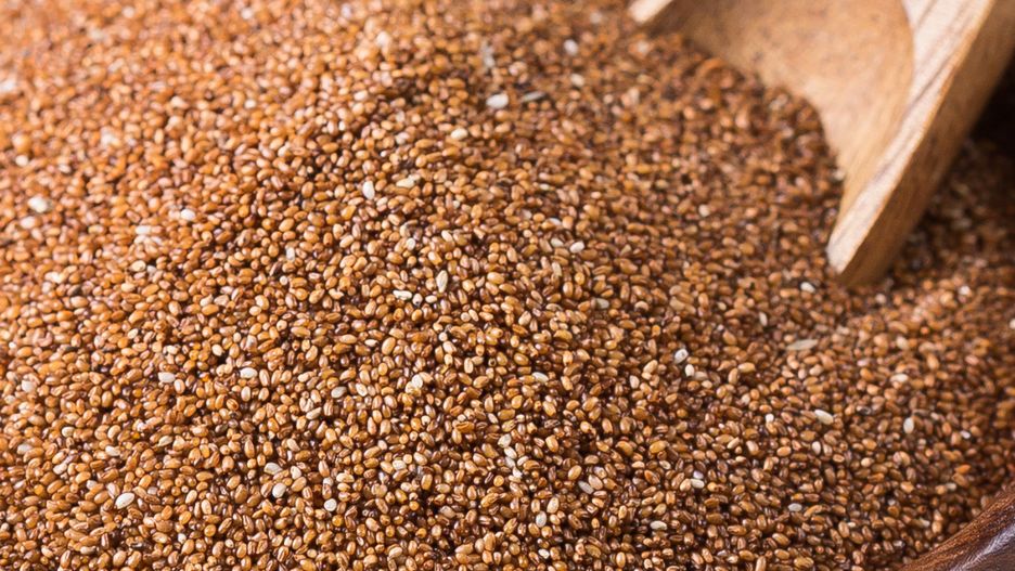 Ziarna są drobne jak piasek, smakują prawie jak orzechy i są dobrze wyposażone w wartości odżywcze. W 100 g teff dostarcza ok. 350 kcal, około 10-13 proc. białka, dużo błonnika (nierzadko 7-9 proc.) oraz sporo wapnia. Te wartości są o wiele wyższe niż w przypadku ryżu i mąki pszennej. Obecność skrobi opornej i rozpuszczalnego błonnika spowalnia wchłanianie glukozy i daje długie uczucie sytości. Teff zawiera też naturalne fitoskładniki (m.in. kwasy fenolowe), które wspierają organizm w walce ze stresem oksydacyjnym. Jednak uważaj na pewną rzecz: jak każde zboże ma fityniany, które mogą ograniczać przyswajalność minerałów.