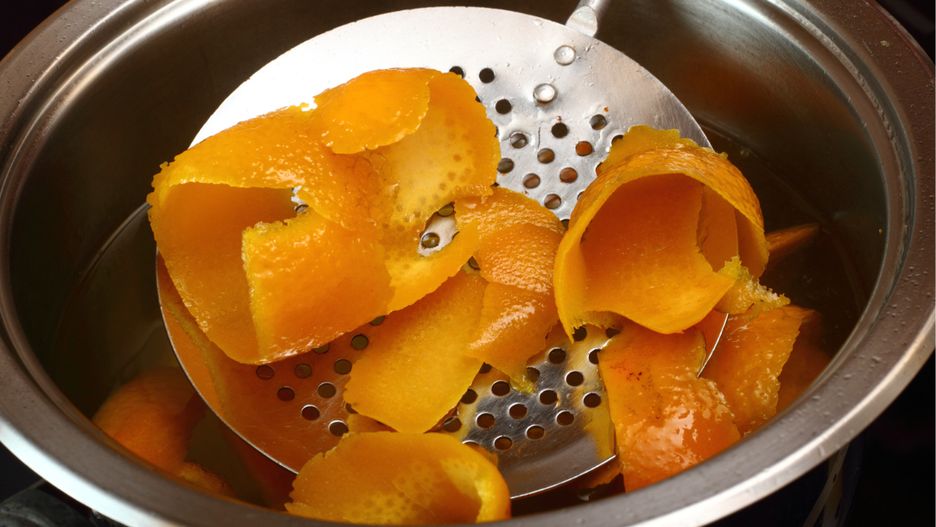 - Skórki z pomarańczy zalej zimną wodą i wstaw do lodówki na 24 godziny.