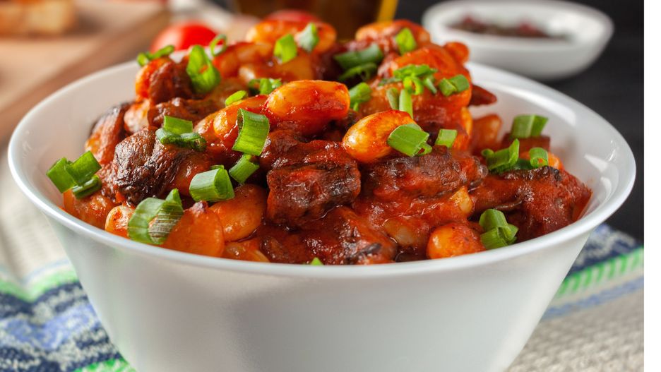 To nasz kolejny pomysł na danie jednogarnkowe, które można podać na śniadanie, obiad lub kolację, a nawet spakować do słoika i zabrać pod namiot. W wersji bez mięsa nie trzeba tyndalizować fasolki, aby miała długi termin ważności. Jednak najlepiej smakuje wtedy, gdy tofu jest jeszcze chrupiące.